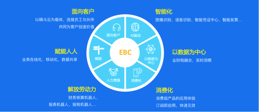 云時(shí)代企業(yè)的核心是以客戶為中心,要求我們建立以客戶成功為中心、長(zhǎng)期可持續(xù)發(fā)展的行業(yè)生態(tài)系統(tǒng)。對(duì)于精斗云來(lái)說(shuō),陪伴小微企業(yè)一起奮斗是始終不變的宗旨。 新一代精斗云產(chǎn)品,以智能財(cái)稅為核心,攜手更多行業(yè)生態(tài)伙伴,共同打造小微企業(yè)一站式成長(zhǎng)服務(wù)平臺(tái),幫助小微企業(yè)構(gòu)建企業(yè)業(yè)務(wù)能力(EBC)。